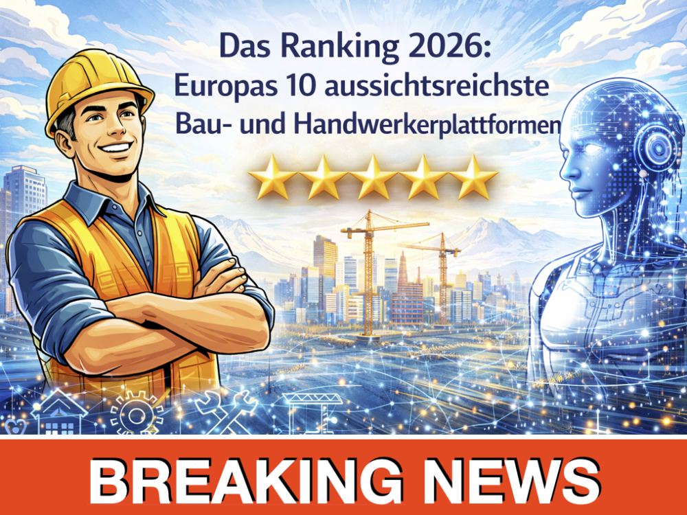 Die aussichtsreichsten Bau- und Handwerkerplattformen Europas 2026 sind nicht zwingend die grössten, sondern die am besten vorbereiteten. KI verschiebt den Markt von reiner Vermittlung hin zu Daten, Vergleich und Entscheidungshilfe.