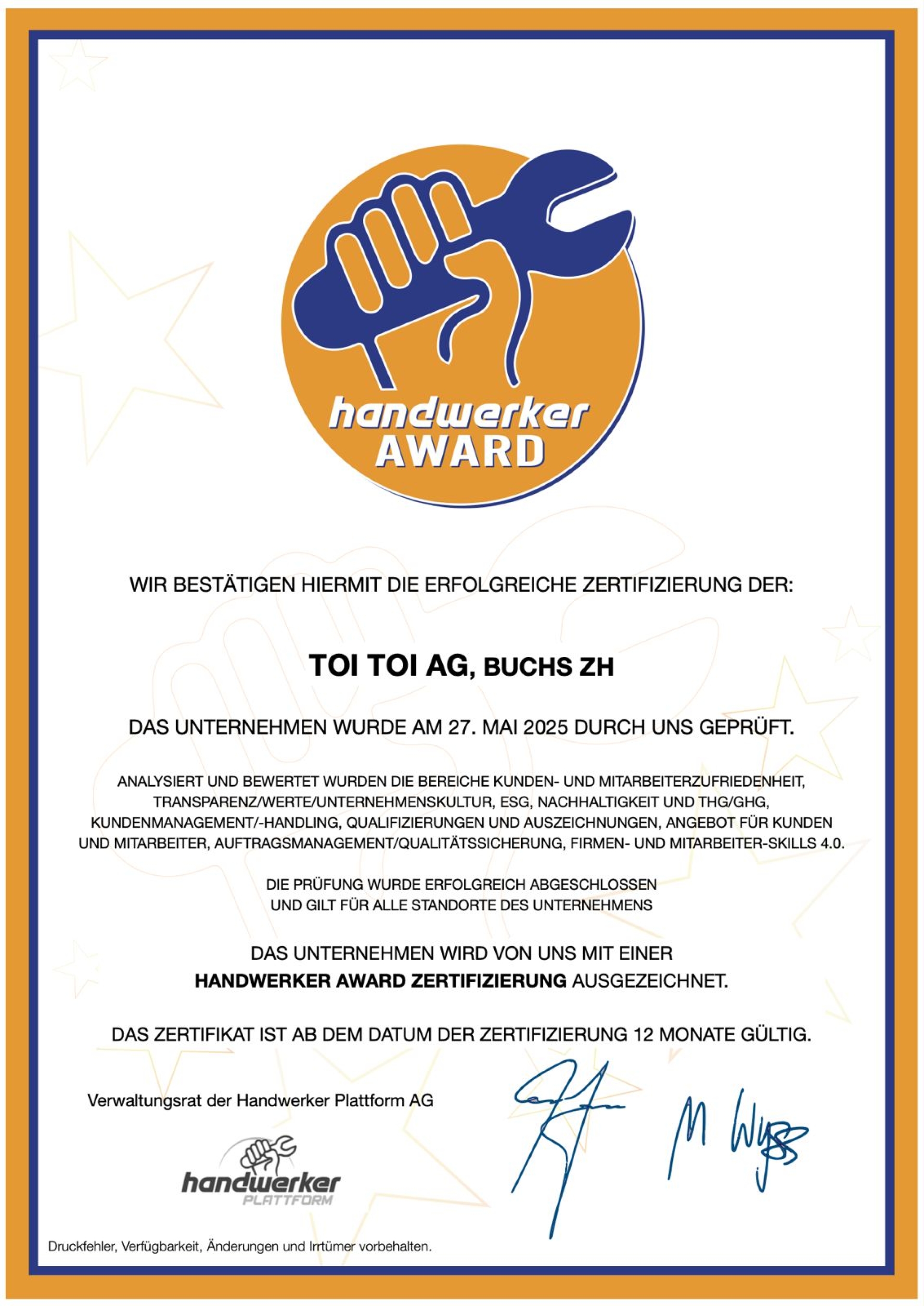 Dieser Betrieb wurde von handwerker.ch mit dem TopBetrieb AWARD zertifiziert und ausgezeichnet.