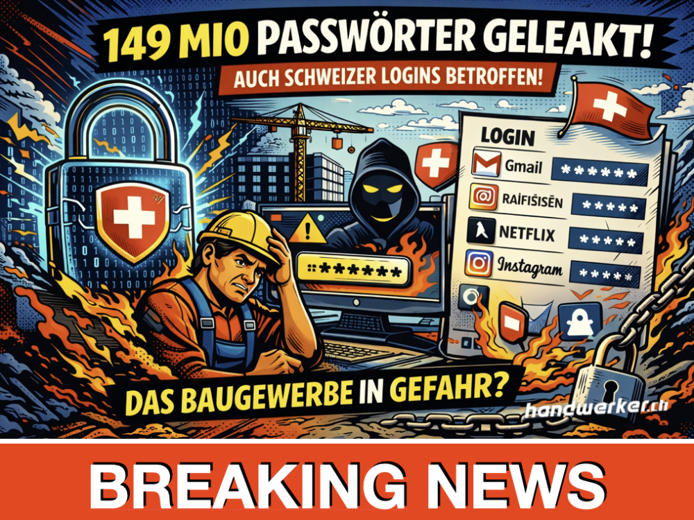 Der Fund von 149 Millionen geleakten Passwörtern ist kein abstraktes IT-Thema. Er betrifft direkt den Alltag von Bauunternehmen, Handwerksbetrieben und Architekturbüros in der Schweiz.