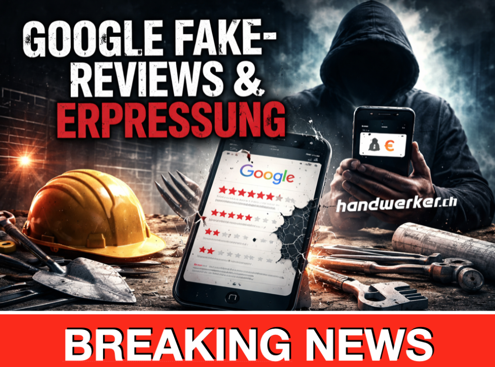 Immer mehr Schweizer Handwerks- und Bauunternehmen berichten von einem beunruhigenden Muster: Ohne erkennbare Ursache tauchen plötzlich mehrere negative Google-Bewertungen auf. Die angeblichen Kundinnen und Kunden sind den Betrieben unbekannt, die Vorwürfe bleiben vage. Kurz darauf folgt die Kontaktaufnahme – meist per WhatsApp oder E-Mail – mit einer klaren Forderung: Geld gegen die Löschung der schlechten Google-Reviews.