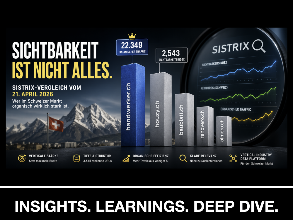 Gerade darin liegt die eigentliche Aussage dieses Vergleichs. Denn die Zahlen deuten darauf hin, dass handwerker.ch als Vertical Industry Data Platform aus einer fokussierten vertikalen Struktur besonders viel organische Nachfrage gewinnt. Anders gesagt: Die Plattform ist im Schweizer Bau- und Handwerkskontext sehr nahe an konkreten Suchintentionen und verwandelt ihre Sichtbarkeit besonders effizient in tatsächlichen Traffic.