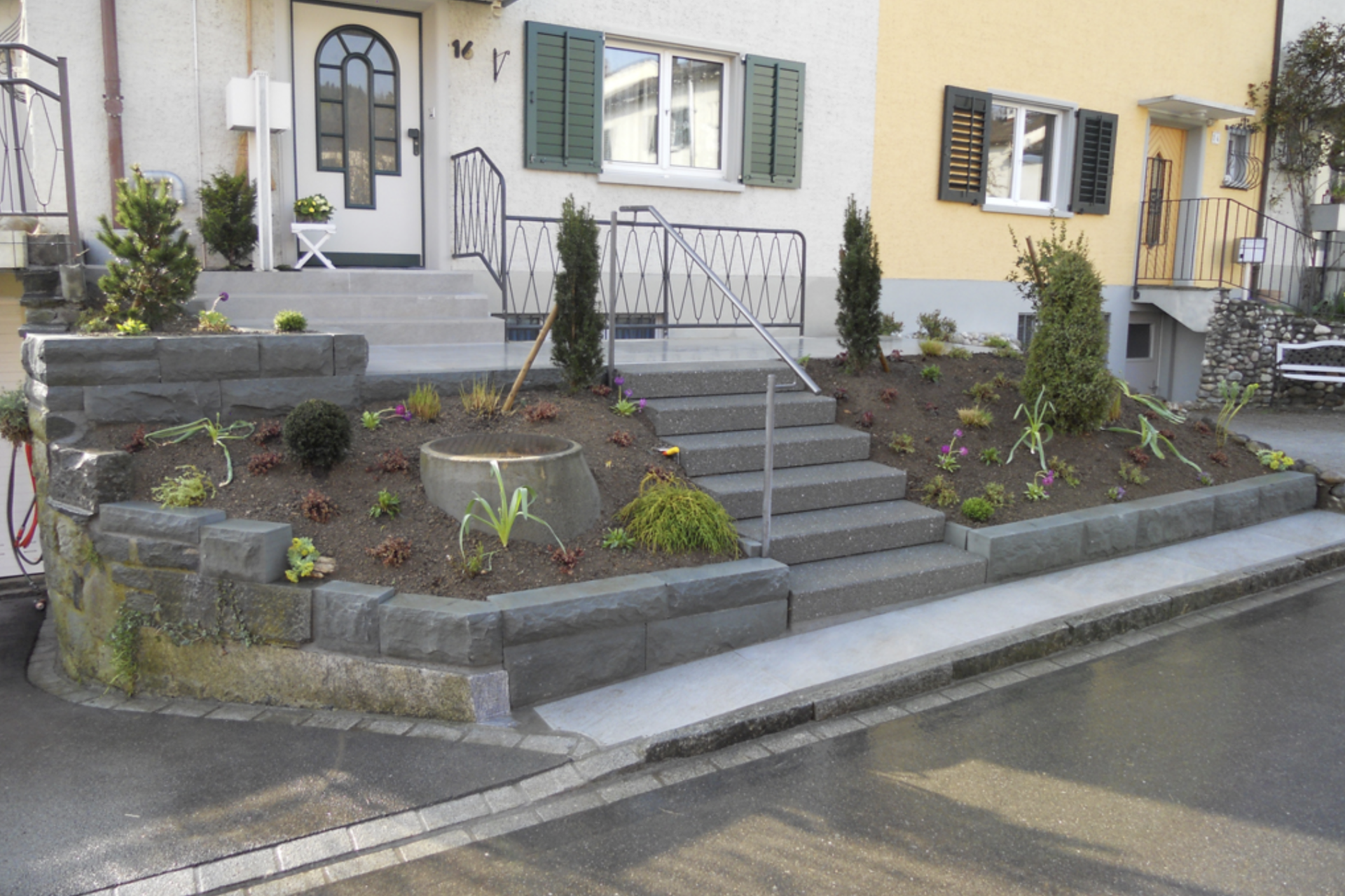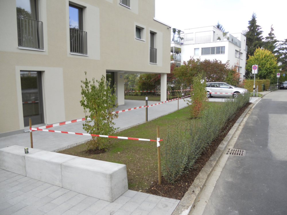 Bei Neuanlagen werden Wege, Plätze, Grünflächen, Pflanzbereiche, Böschungen, Mauern, Sitzbereiche, Spielbereiche, Bäume, Sträucher und weitere Gartenelemente aufeinander abgestimmt. So entsteht ein Aussenraum, der zur Umgebung passt und den Bedürfnissen der Nutzerinnen und Nutzer entspricht.