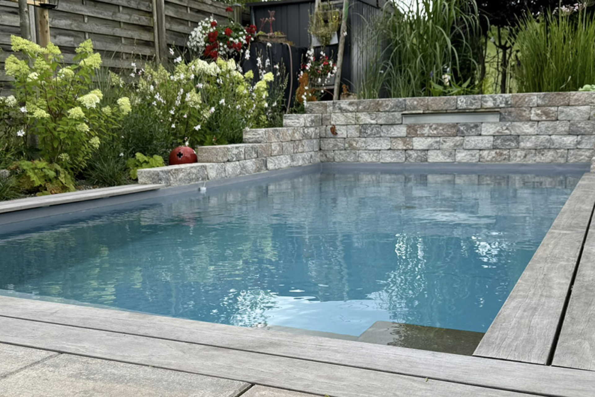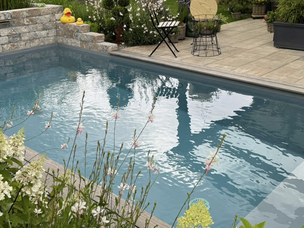 Der Poolbereich wurde so in die bestehende Umgebung integriert, dass eine harmonische Verbindung zwischen Wasserfläche, Gartenstruktur und Zugängen entsteht. Ergänzend dazu wurden die umliegenden Flächen entsprechend angepasst, um eine klare Zonierung sowie eine angenehme Nutzung im Alltag zu ermöglichen.